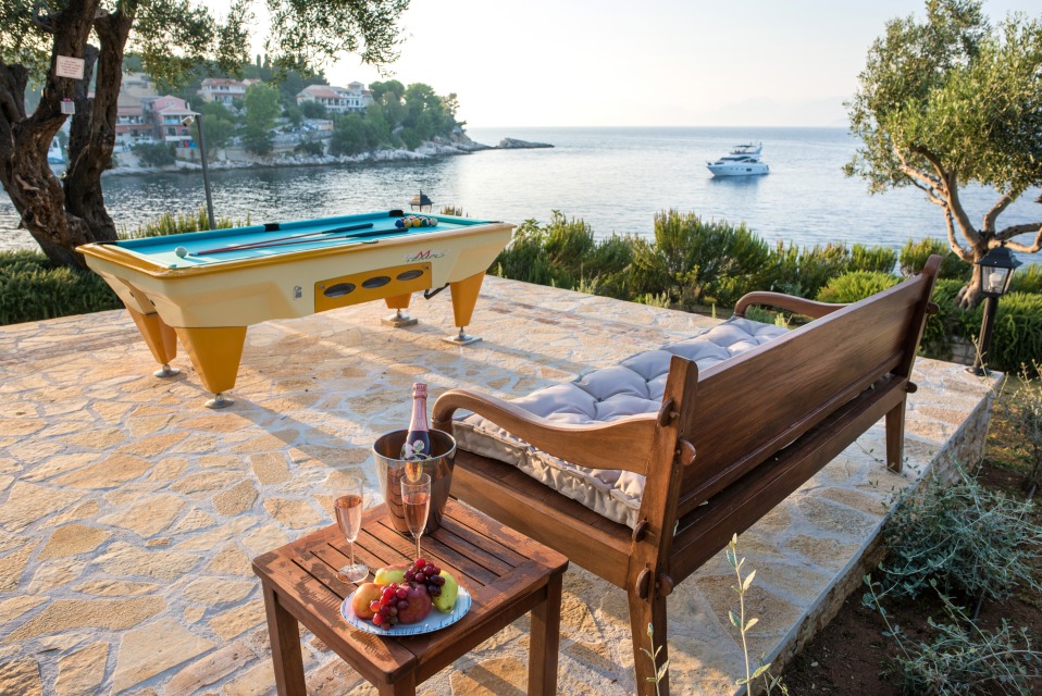 The three storey villa Aliki has the entrance from the first floor where there is a parking place. Entering the first floor we find a small play room, two bedrooms with independent bathrooms, balconies. The second floor has two bedrooms with bathrooms and a large terrace.